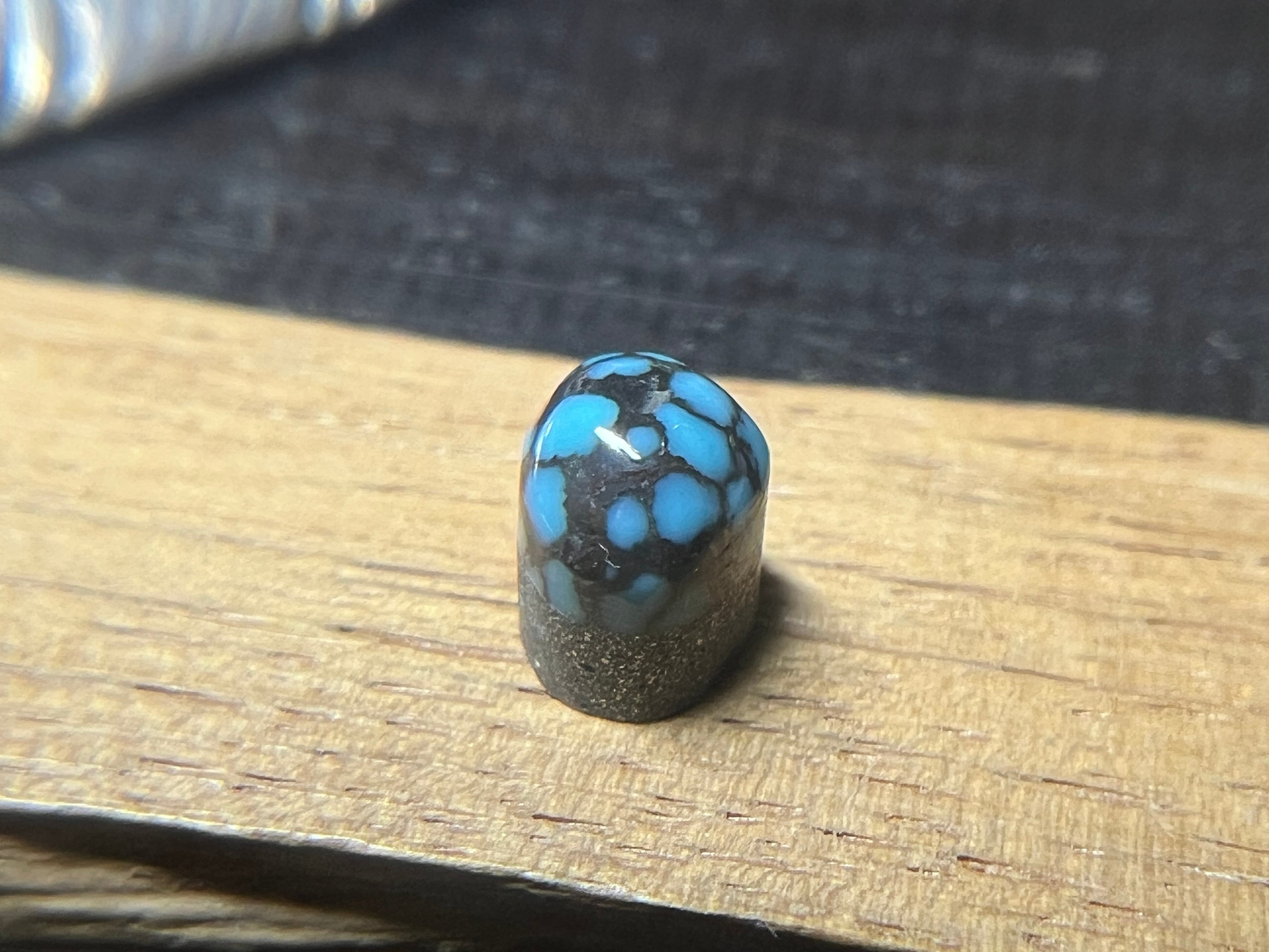 ナチュラル(ノートリートメント ノーエンハンスメント)。光沢のある濃いターコイズブルーにランダーブルー の特徴であるブラックマトリクスが均一に入り、全体的に艶やかで硬度の高い極上のピースです。厚みがあるピースですので存在感抜群です。