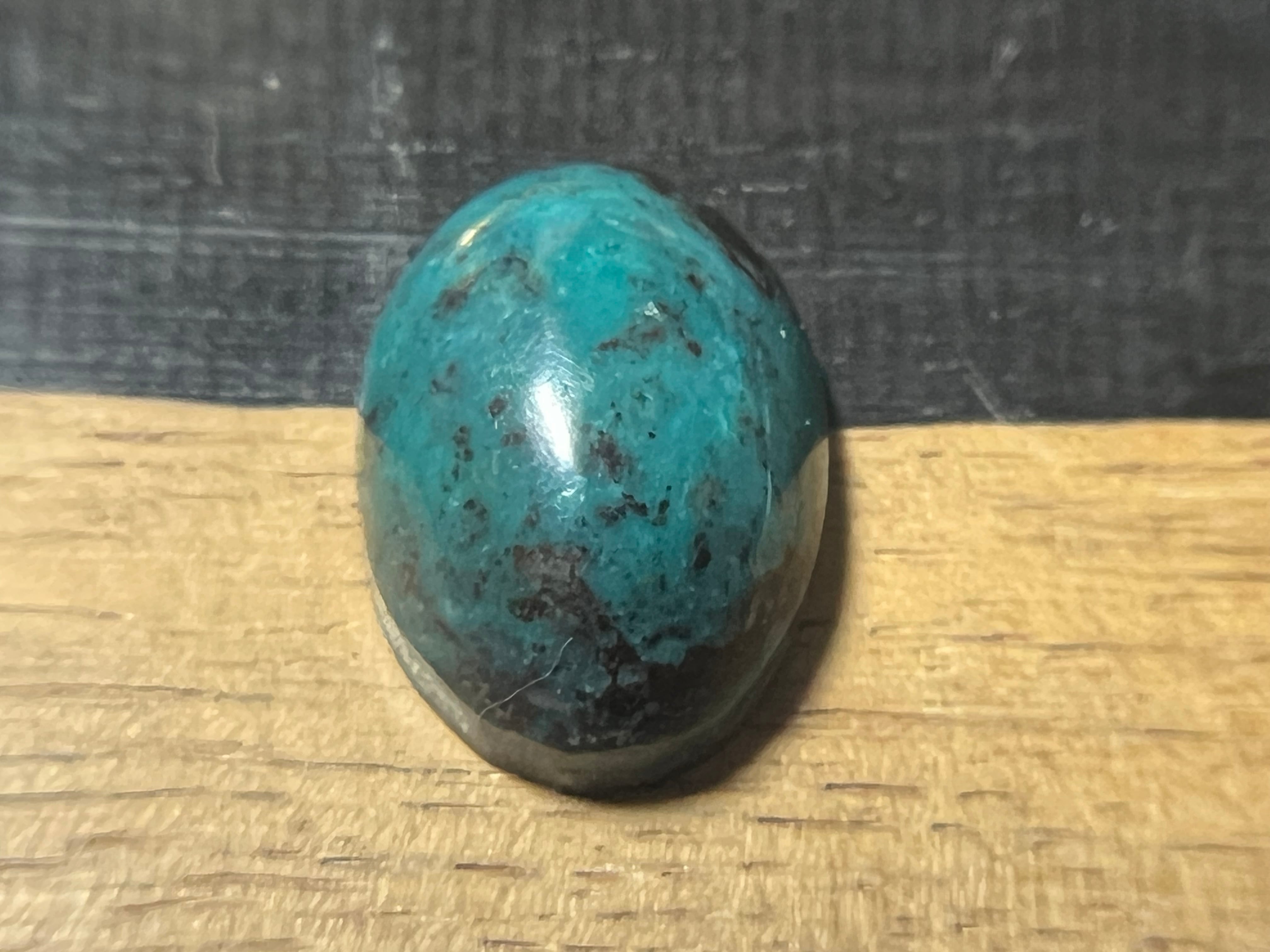ナチュラル(ノートリートメント ノーエンハンスメント)。硬度が高く光沢のあるターコイズブルーにビズビーの特徴である茶褐色のマトリクスが入り極上のピースです。リングに映えるサイズだとと思います。