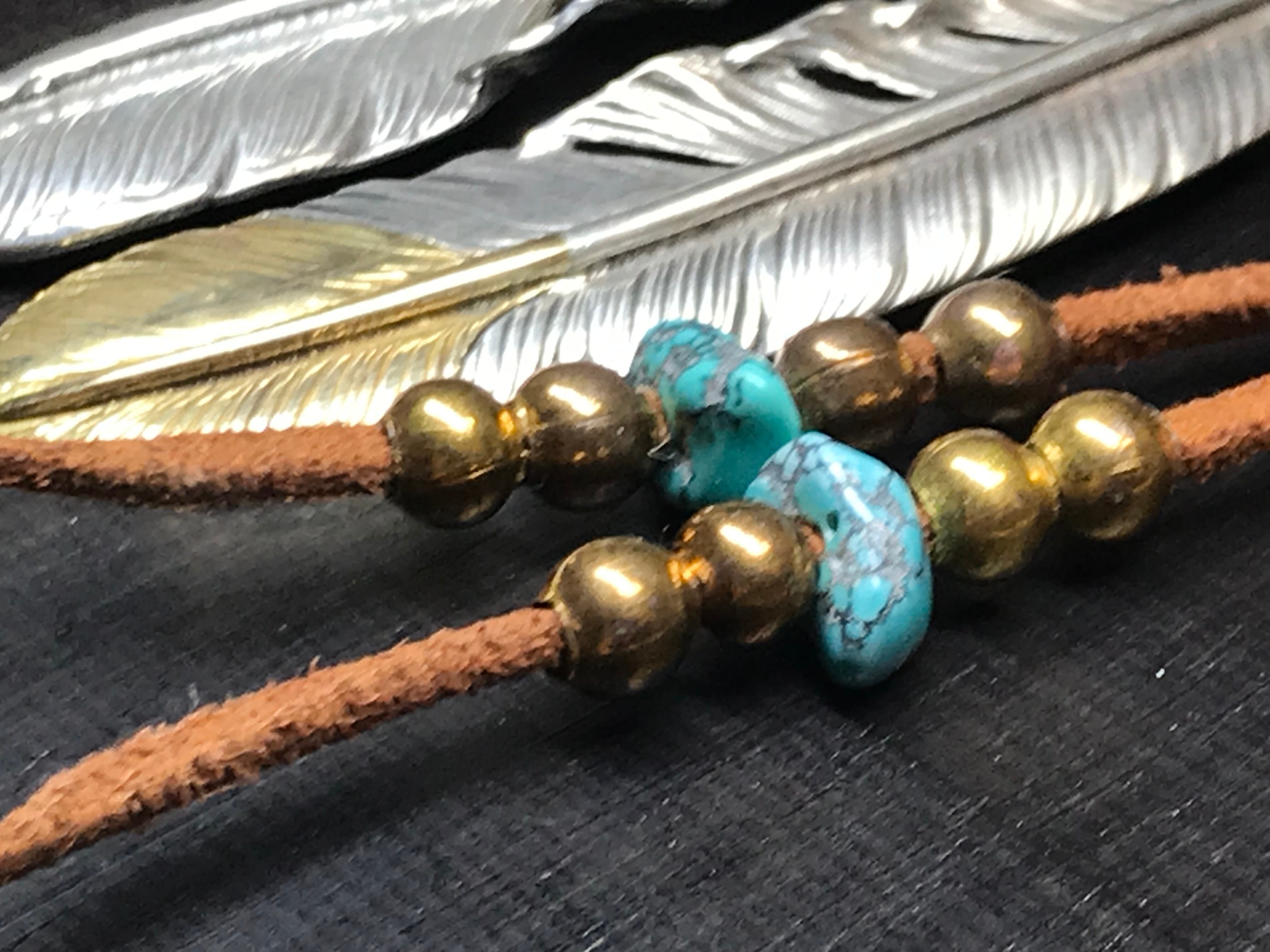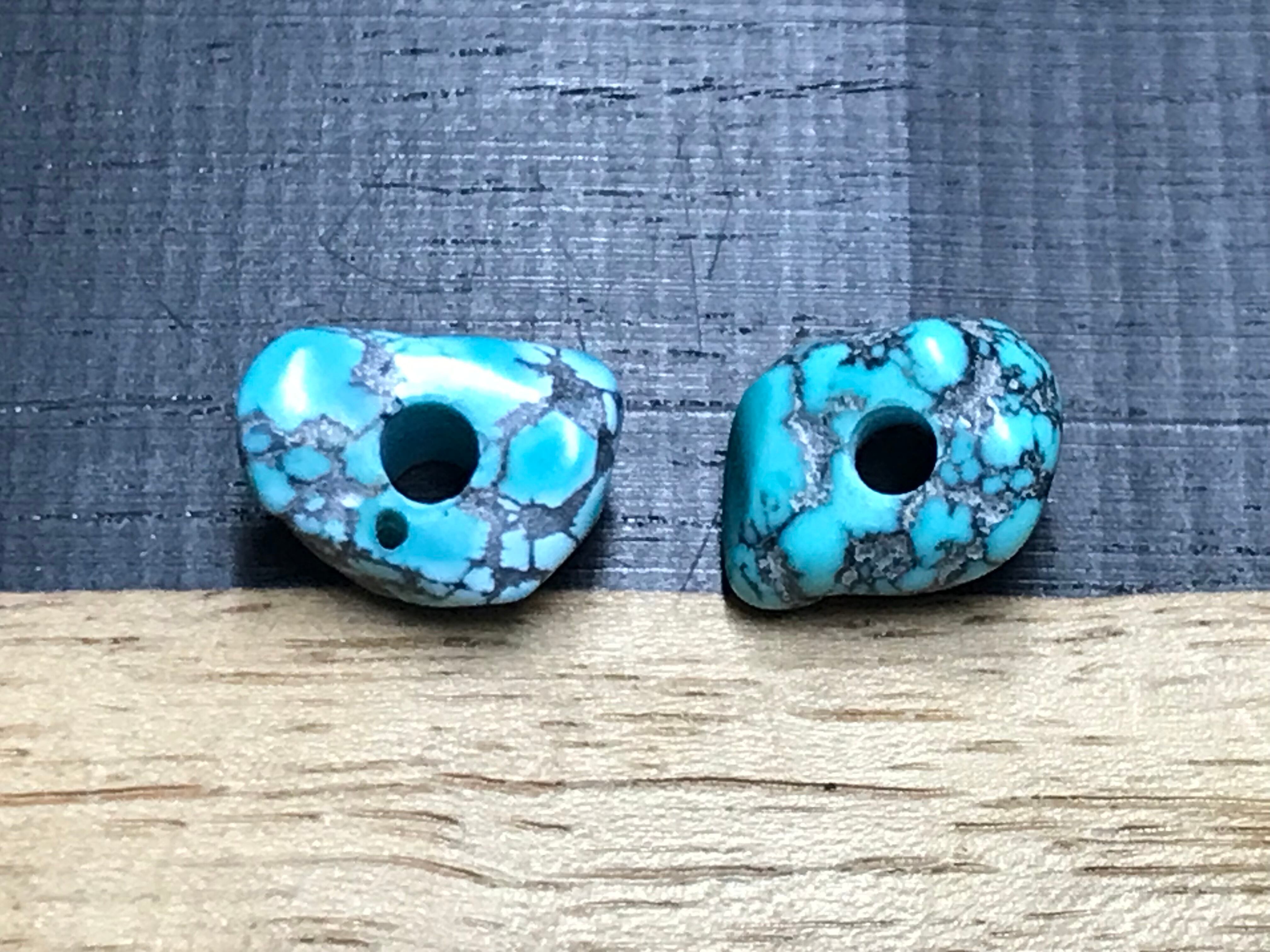 (1点もの)Natural 革紐用 ターコイズ ラフカットビーズ2粒セット (ゴローズ goro's FIRST ARROW's Wing rock Larry smith 鷲見太郎 Arizona Freedom カスタム)